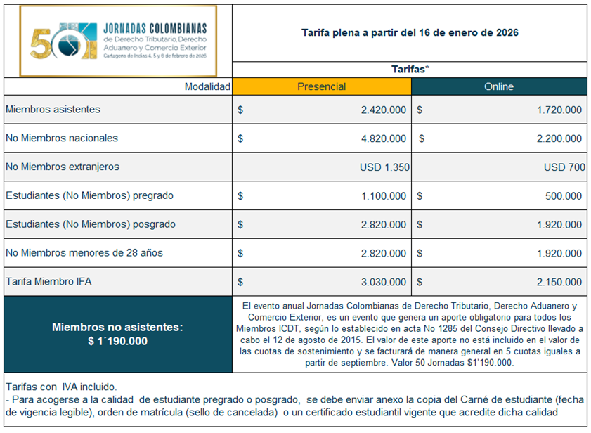 50 Jornadas Colombianas de Derecho Tributario, Derecho Aduanero y Comercio Exterior